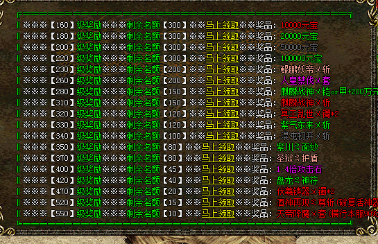 >>短信1=300W元宝 网银%100元宝 点卡%90元宝 全服统一比例,公平,公正