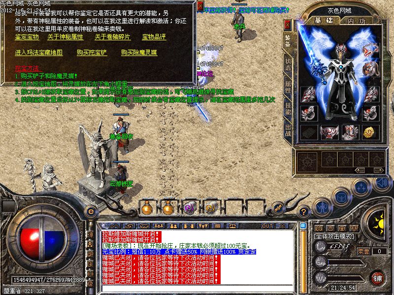 每天每隔4小时财神爷会发放一次宝物!全服高级装备和道具都有!