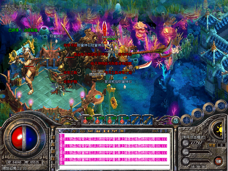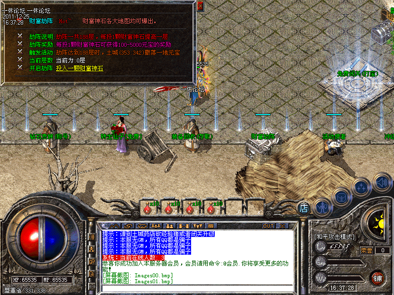 【更新】财富劫阵,BOSS爆出财富神石可以启动财富阵,启动的同时可以随机获得元宝!!满188层土药将会出现大量的元宝!!具体请查看土城财富劫阵NPC!!