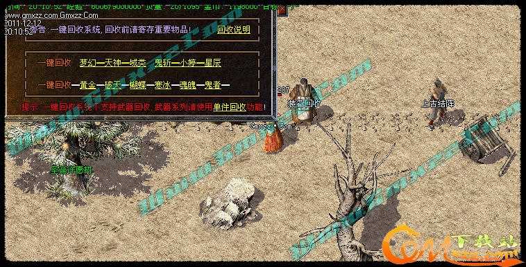 本游戏装备回收系统,可以让你更快速的升级,和获得元宝.回收时请注意物品的颜色.白色物品不接纳,颜色等级分别是.绿.红.紫.橙.! 赤月,天神,梦幻,域类装备可投放到上古结阵获取丰厚的奖励和趣味宠物.