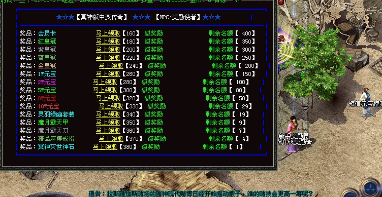 【更新】更新转生系统,1-9转,转生后每转都可以获得相应属性点,每转可获得强悍技能.详情请看转生使者!