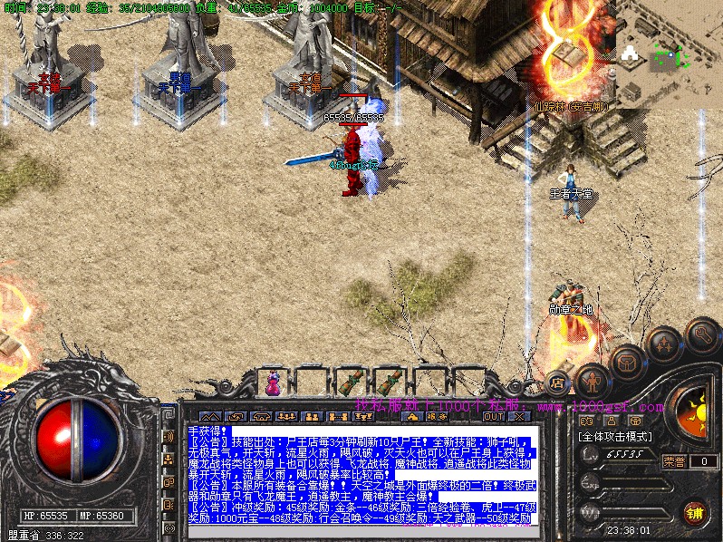 新颖特色:“生死赌命”“群英争霸”“行会争霸”“行会PK召唤”“赌博系统”“龙珠许愿”