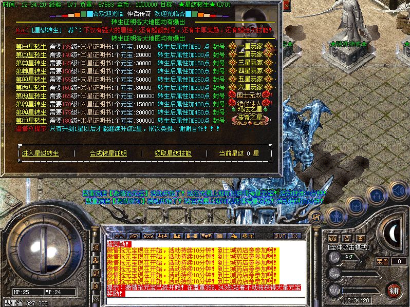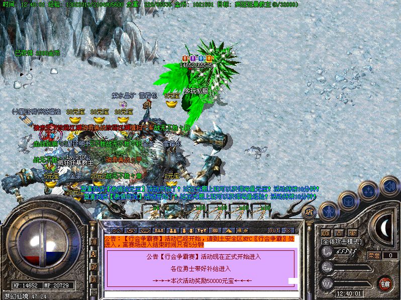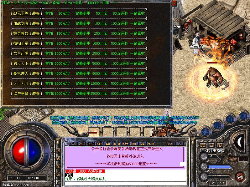 关于攻沙奖励的公告:新区第一任沙巴克城主奖励:150万元宝;老区(合区后)攻沙的奖励为:50万元宝;