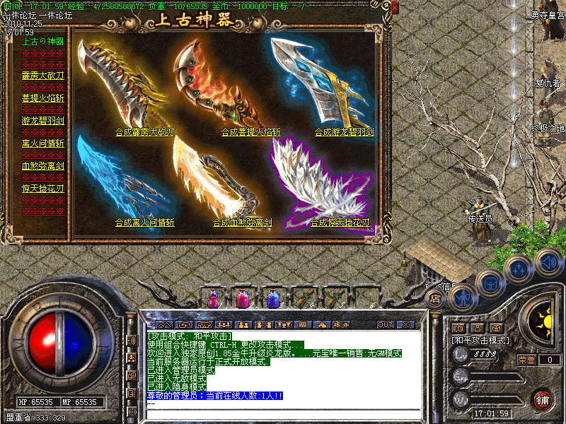 4.武器升级7点,成功率80%,需要时间10分钟,黑铁矿需要在比奇矿区挖出 !