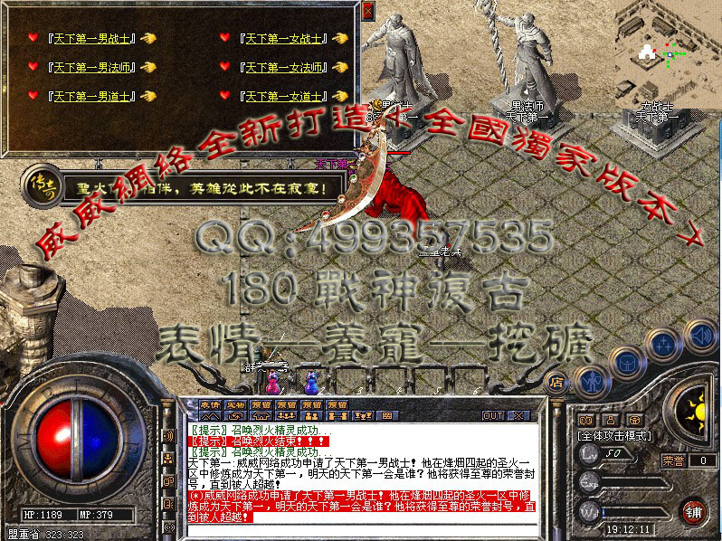1.80复古战神元素版,无英雄.魔龙大决战,所有终极地图金币传送