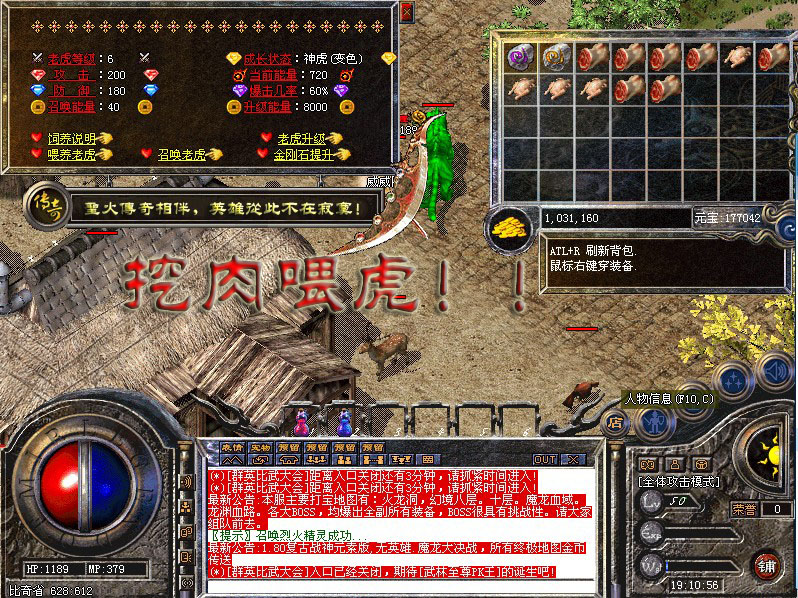 11:最新更新养虎系统.老虎蛋魔龙教主3:1.火龙神1:1商铺888元宝一个(限时)