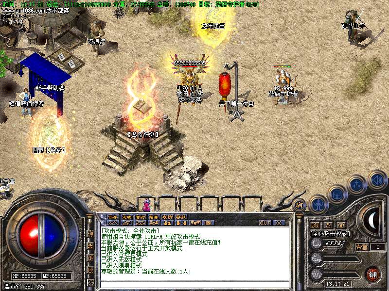 一.【地图介绍】:练级地图为、盘古、石墓、生死之间、幻境三层、霸者大厅、尸魔三层.特别自助刷怪地图恶魔广场为5倍经验*三倍经验石可实现15倍经验