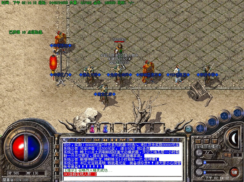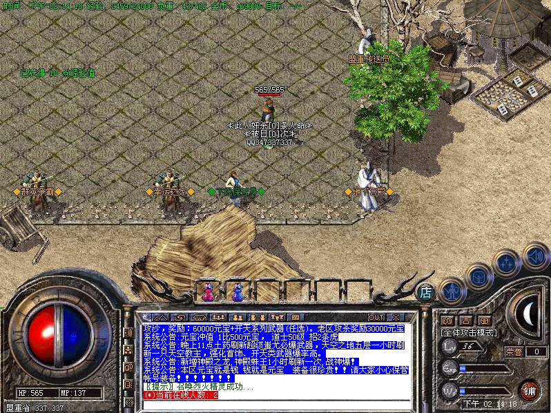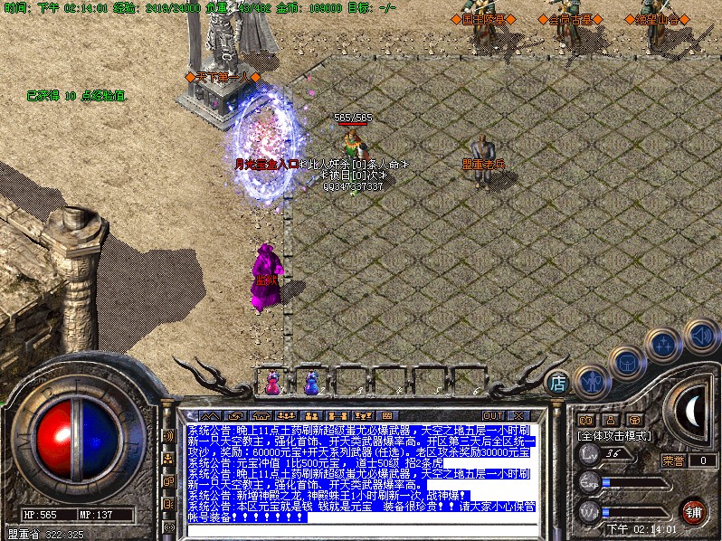 元宝攻略:新手玩家可以去魔龙区域打赤月装备,回收元宝超快;还可以打到雷霆装备!