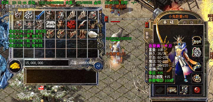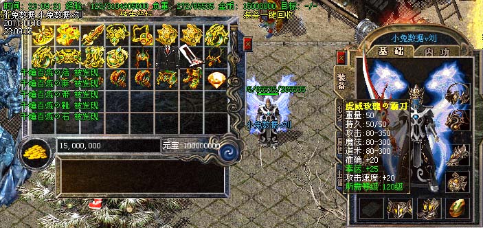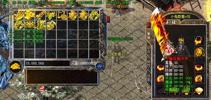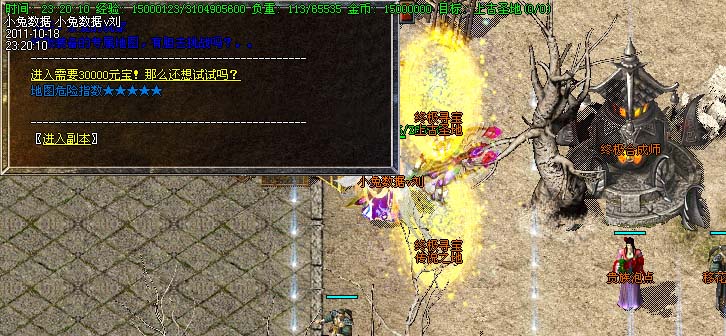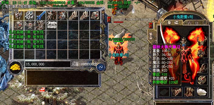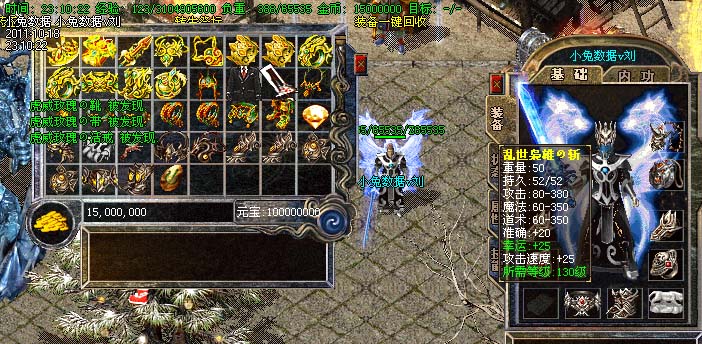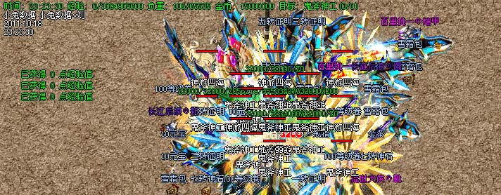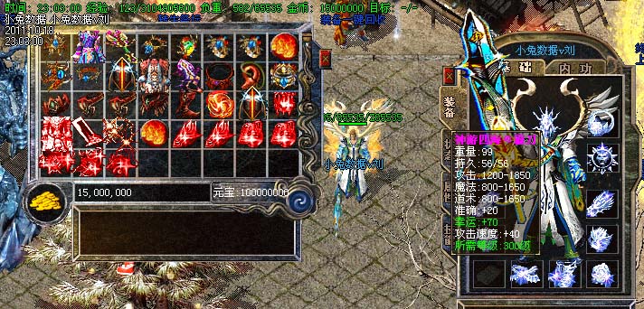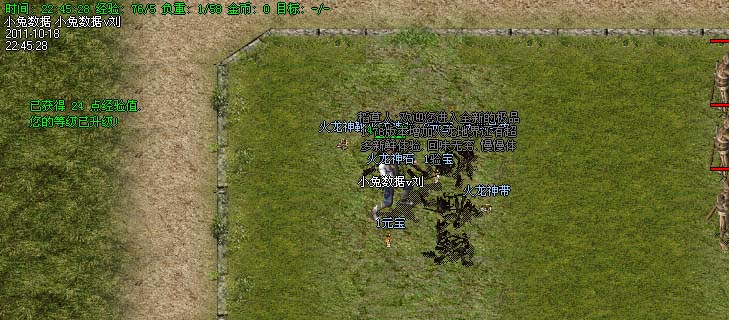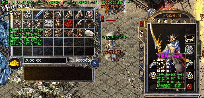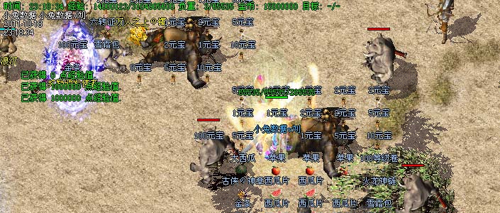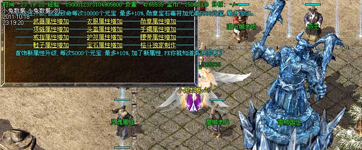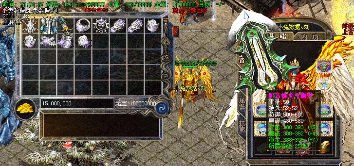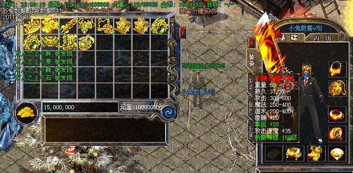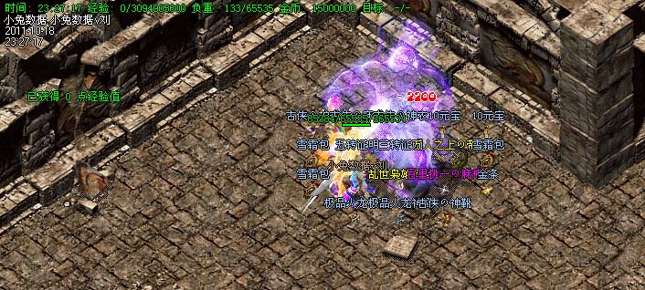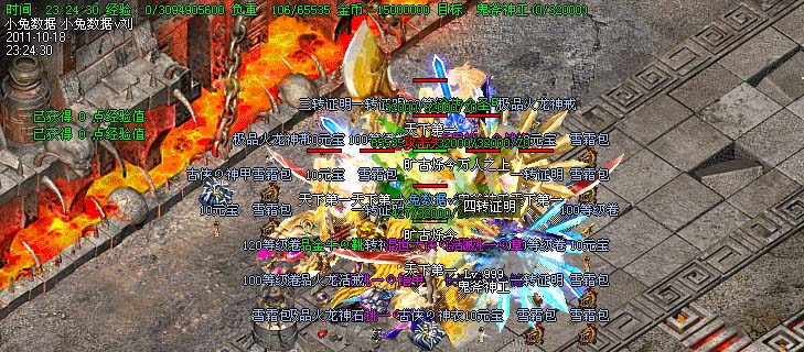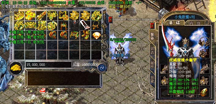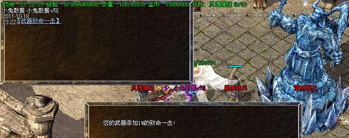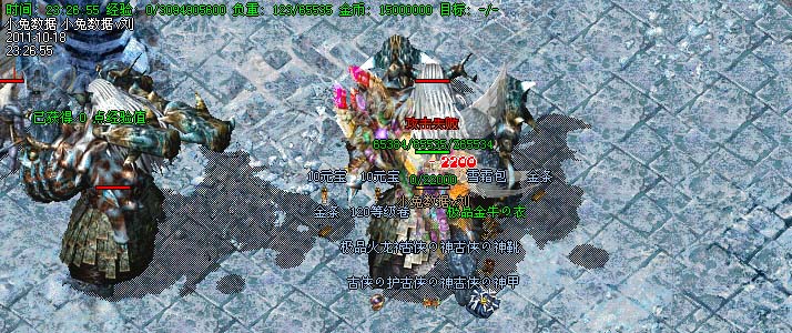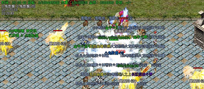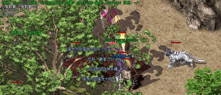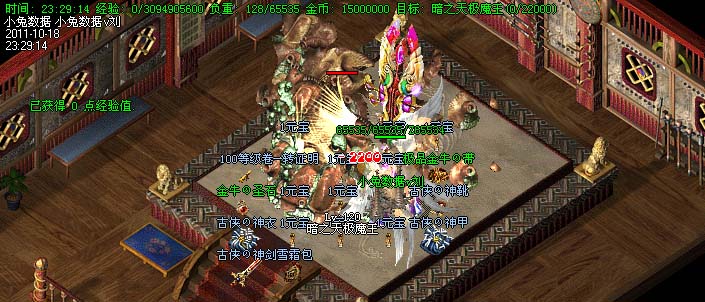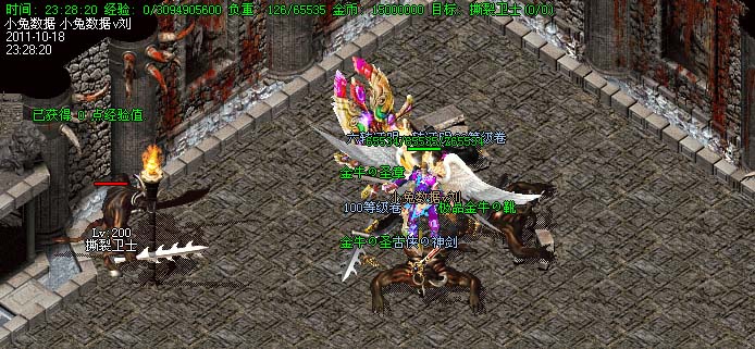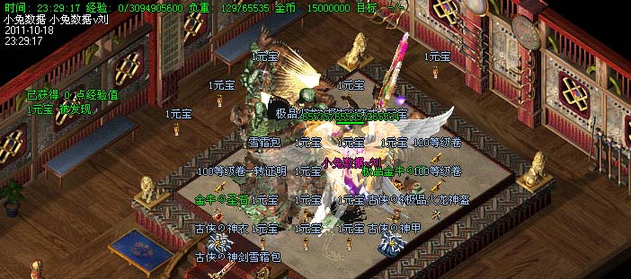 道士180级召唤2只强化白虎圣兽,附带麻痹属性。万人之上の斩以上的武器全部附带毒素属性