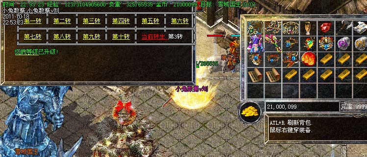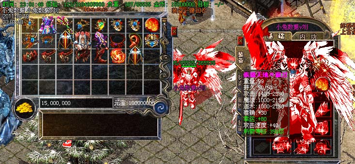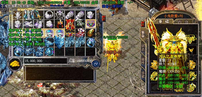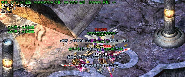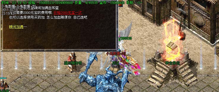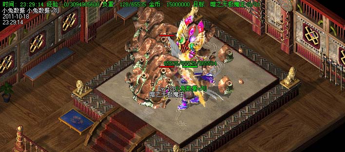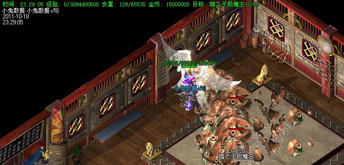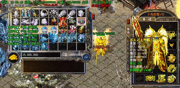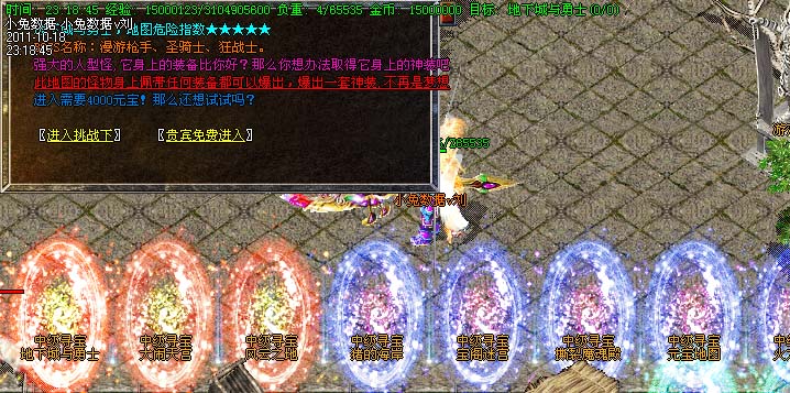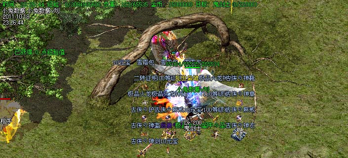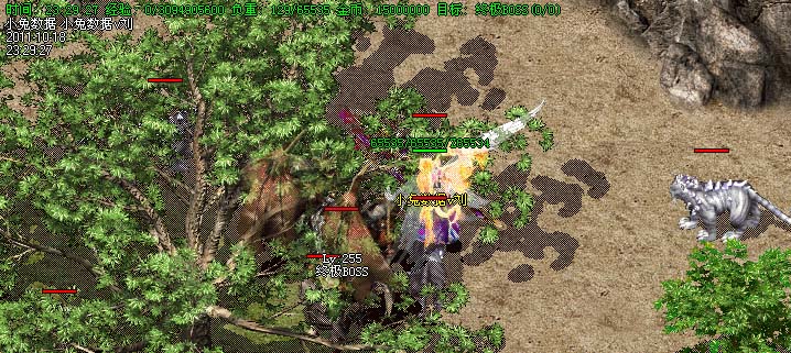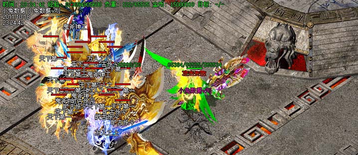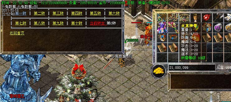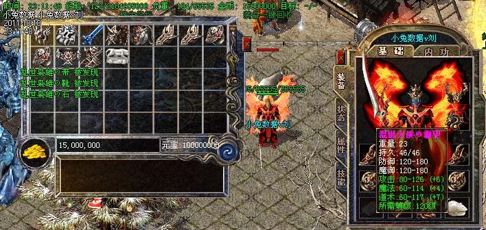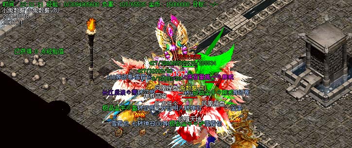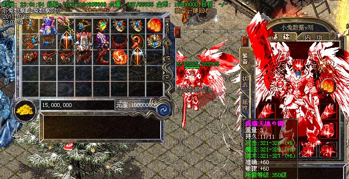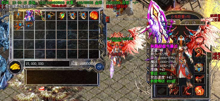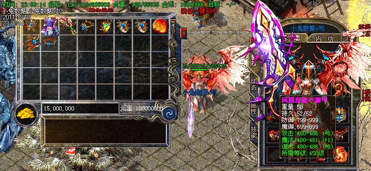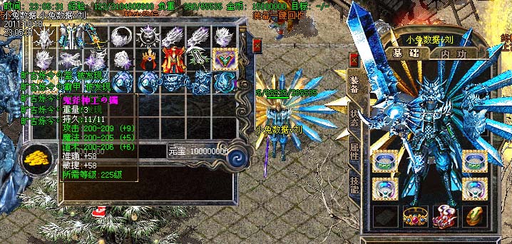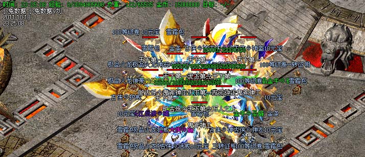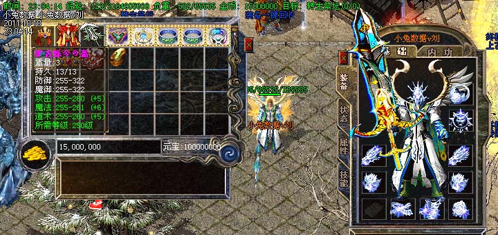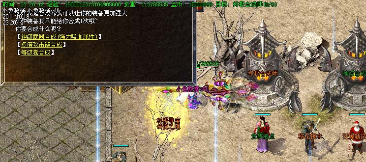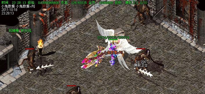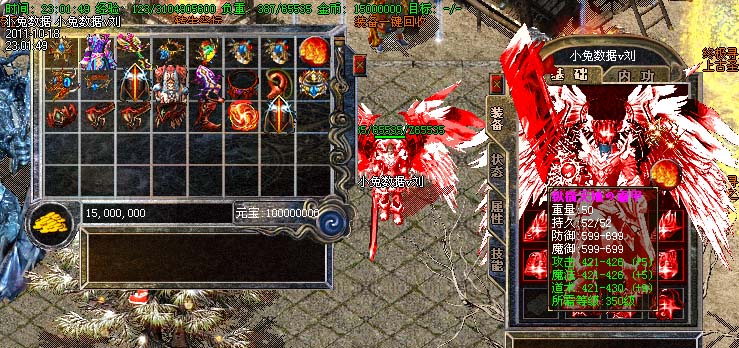 道士180级召唤2只强化白虎圣兽,附带麻痹属性。万人之上の斩以上的武器全部附带毒素属性