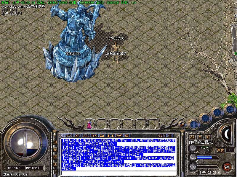 游戏补丁:http://www.9876543210sf.com/soft/17759.html编辑著:查看脚本未加密,采用Hero引擎。附带配套网站。【公告】:本服为2011超越真彩[冰雪天使]3D超变版,地图漂亮装备好看,适合长期散人骨灰