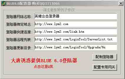 翎易网络 www.yaowansf.com 联系QQ:700480 谢谢支持我们翎易网络今日发布BLUE6.0登陆器配置器 大家自己配置就可以了Blue V6.0登陆器配置器可以使用配置器自行输入网站、游戏列表地址等~~点击同时生成