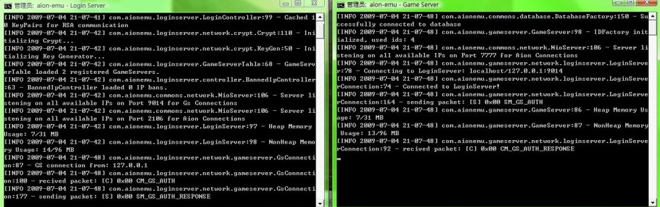 简单架设教程:需要自己安装mysql数据库,并生成ae_server_ls和ae_server_gs两个数据库,将上面压缩文件中的几个sql文件导入生成数据卡表格,(loginserver中的sql导入ae_server_ls,gameserver中的sql导入ae