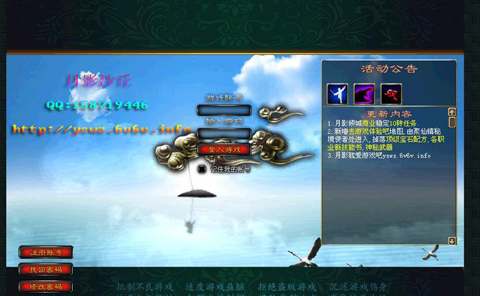 采用最新的gamegui.swf,修复了人物错位的问题,修复了任务,传送,安全区,完善了新地图,如果人物还错位那是因为你们使用的头盔素材图片有问题,希望有人直接下载官方的素材并且提供出