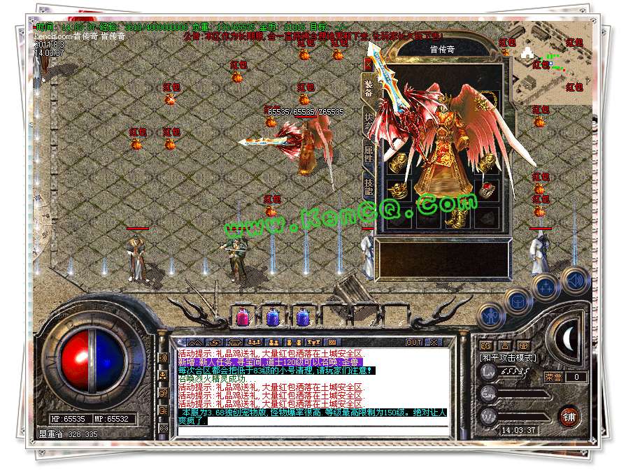 编辑著:查看脚本未加密,采用Hero引擎。更新:1.增加强化战神套。并增加套装属性更新:2.增加行会PK激情战场更新:3.增加终极之门和终极之地更新:4.增加56 57 58级等级奖励更新:5.调整优化