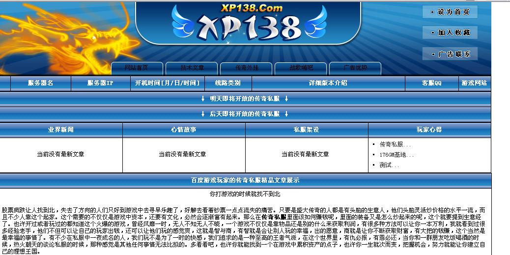 后台地址: http://你的地址/admin/后台帐号:admin后台密码:admin【注意】登陆后台后在‘常规管理’‘系统设置’中把网站地址修改成您的域名!(1) 私服发布: 宣传私服信息发布
