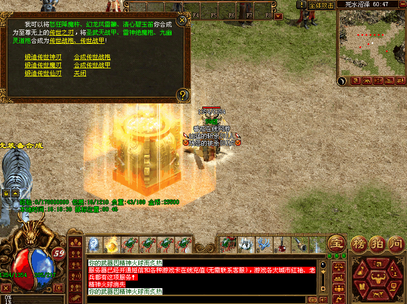 黄金寻宝:活动开始进入黄金城地图,杀死携带字体的老虎收集字体,即可兑换圣天装备