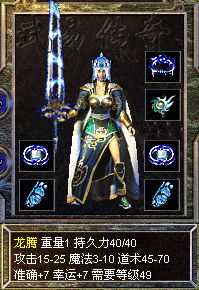 武器 龙 腾 攻15-25魔3-10道45-70准确+7幸运+7 400 49
