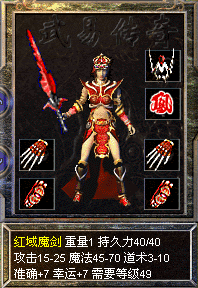 武器 红域魔剑 攻15-25魔45-70道3-10准确+7幸运+7 400 49