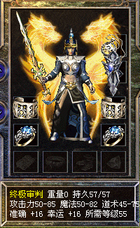 戒指 帝王神戒 防5-5魔御5-5攻击10-17魔法2-8道术2-4 60 45