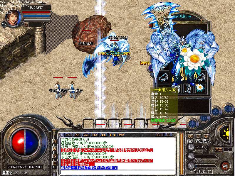 【特色】方便玩家游戏,右键穿戴装备,一次全部回收装备,会员随身购物服务,等更多请玩家游戏中体验!