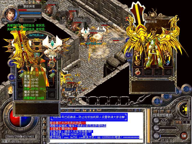 【特色】适当加强三职业技能,使合击更加完美,英雄差距平等!游戏更平衡,突出幸运九套,PK更有激情!