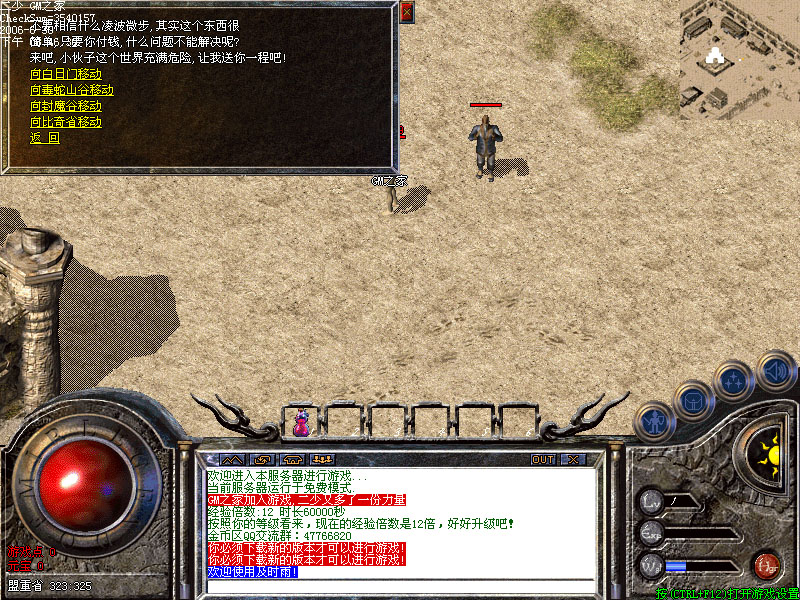 爆率设置: 金币爆率为盛大1.3倍,技能书及沃玛装备爆率一般,祖玛装备爆率较低,6件新衣服及赤月装备爆率很低。
