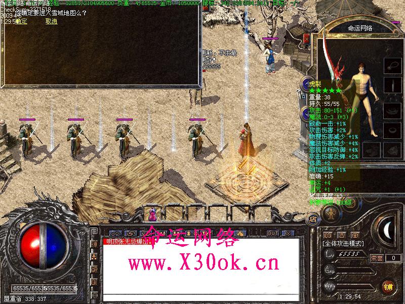 这时候再呆在那里已经没有什么意思了。建议你去牛魔洞,赤月类装备很好打,路上打到什么东西多别忘记拿起看看,这边有个记忆项链。拿起一看,我靠幸运+3,老子发达了!!咦!这是什么?重钢裁决。一看属性。。。65攻击的爽啊。