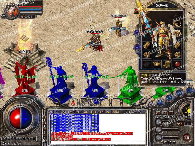 新手可打赤月装备到土传送员换取声望以及经验。本服暴率超高,只要你有时间,终极套不是梦。