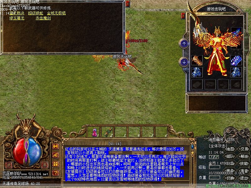 6、红名的玩家可以在土城的 天涯搏客 那里清洗红名,每次费用100万,没有钱可以小退再上刷钱。
