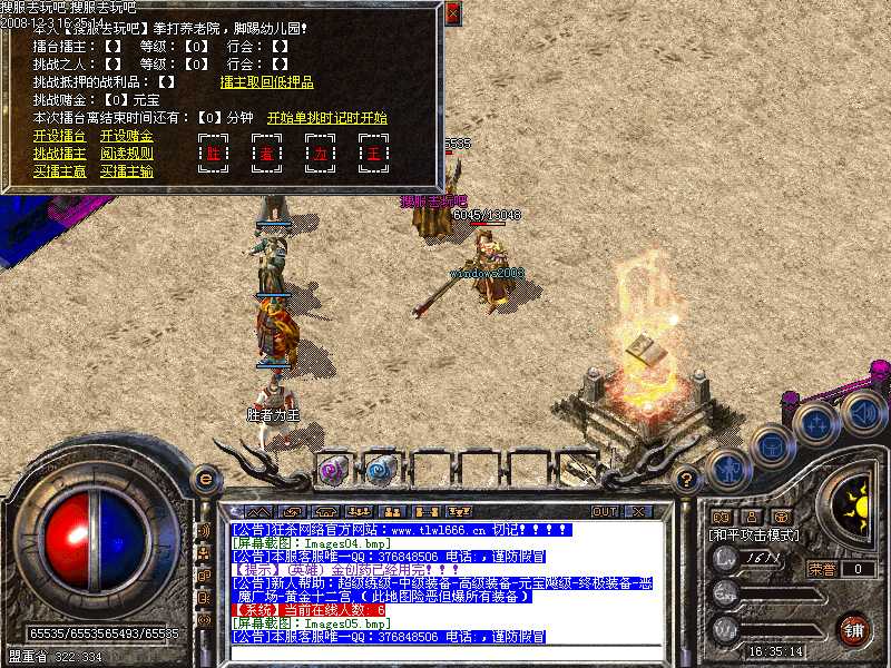 6.支持盛大最新挑战系统,PK赌装备,只要点下物品栏的挑战按钮,然后把要赌的装备放在系统