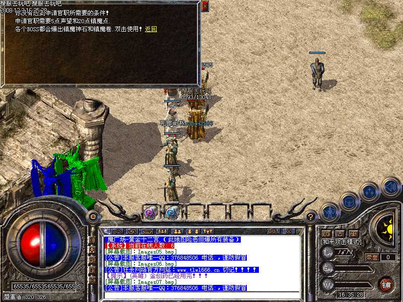 【本服优势】我们不出售任何装备,一切装备都靠自己打出来。只要您有时间...不是人民币玩家都可以享受的高级装备的乐趣,本服的爆率既可以使玩家体验到打装备的乐趣,又可开心心的练级PK,如果你是一个人.抢不过别人.建议你可以去做任务.闯妖塔,获取经验和装备.如果你们是小团体.建议你们去寂静之地.装备.武器.元宝都会爆出本服力求公正、免费、稳定,GM不参加游戏 为了让每个区的人气火爆.我们的广告将用重金打造