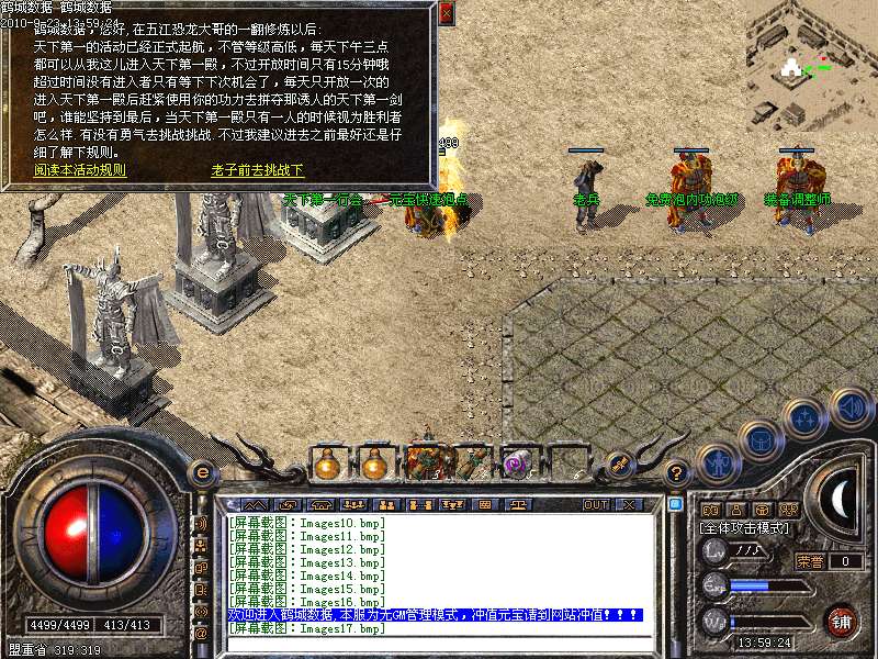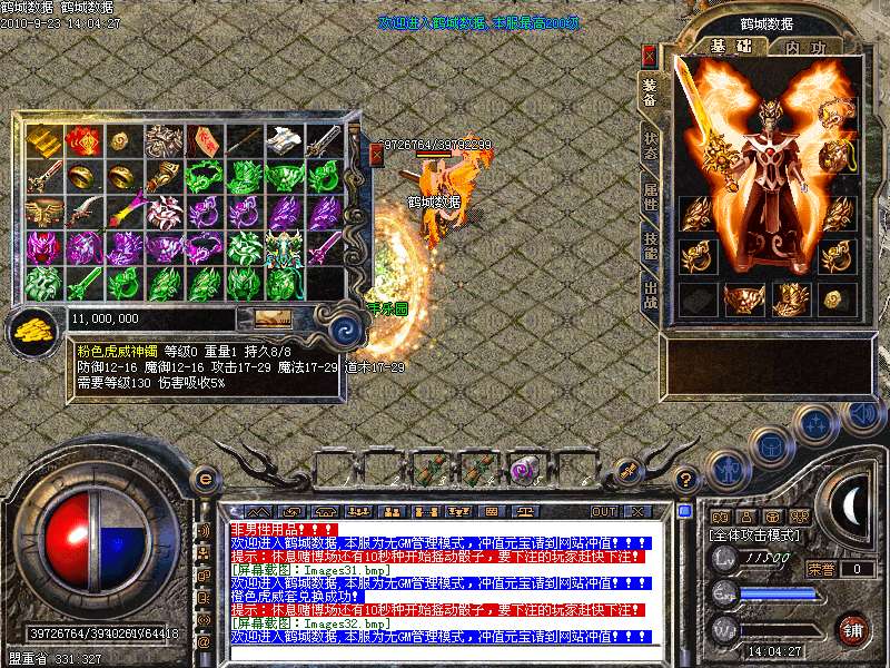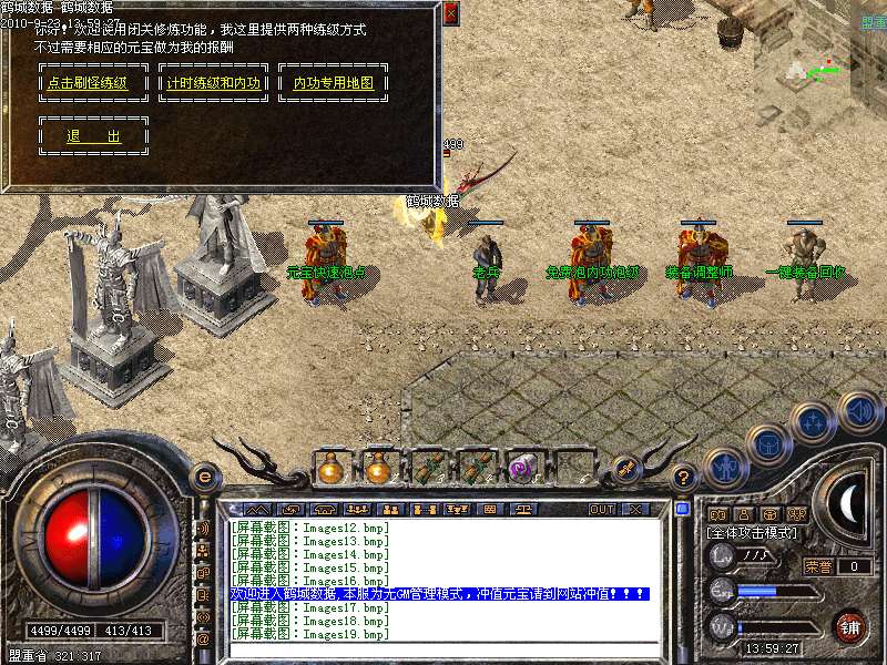 3.元宝获得方法:可打怪物直接爆出,也可打到多余的装备回收获得元宝,总之本服的元宝非常容易搞到.