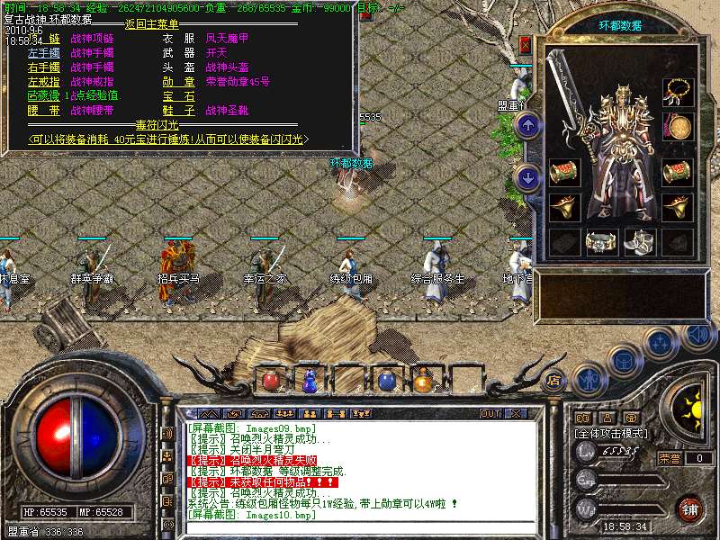★本服终极装备为战神系列、要想比战神高的装备,那就只有努力的打极品战神了.