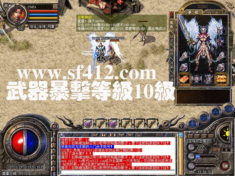 立即下载最新主宰合成连击四级合击技能四级破魂斩四级烈火剑法赤炎石增加武器暴击等级+补丁