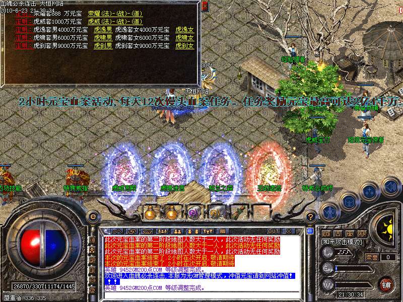 本服为无GM管理模式,冲值元宝请到网站冲值!!!