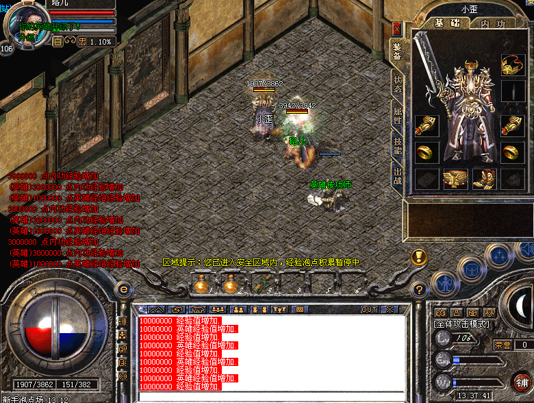 新手练级我们特设置了免费闭关泡点①安全泡点.免费闭关泡点②可以边获取装备边获取经验