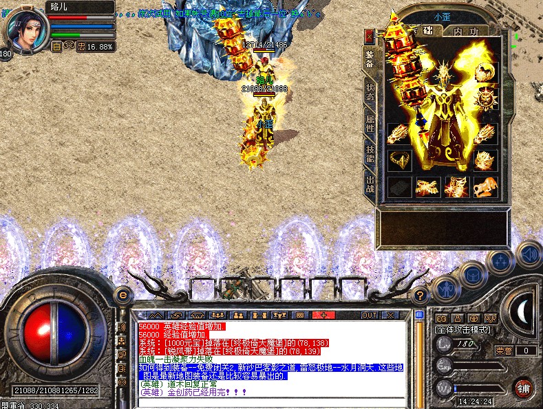 游戏介绍④ 每天晚上7点庄园宫庭刷一虎威必爆怪,将爆一套虎威装备
