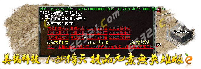 增加装备合成系统!具体的系统介绍你只要去土城的高级服务生和庄园就可以了解!土城传送员可以前往庄园!!