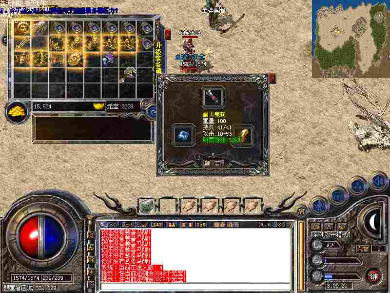 [装备系统]:完全仿盛大最新的装备,全部装备完全按照官方最新属性和外观,无需另外装备补丁,装备较多。