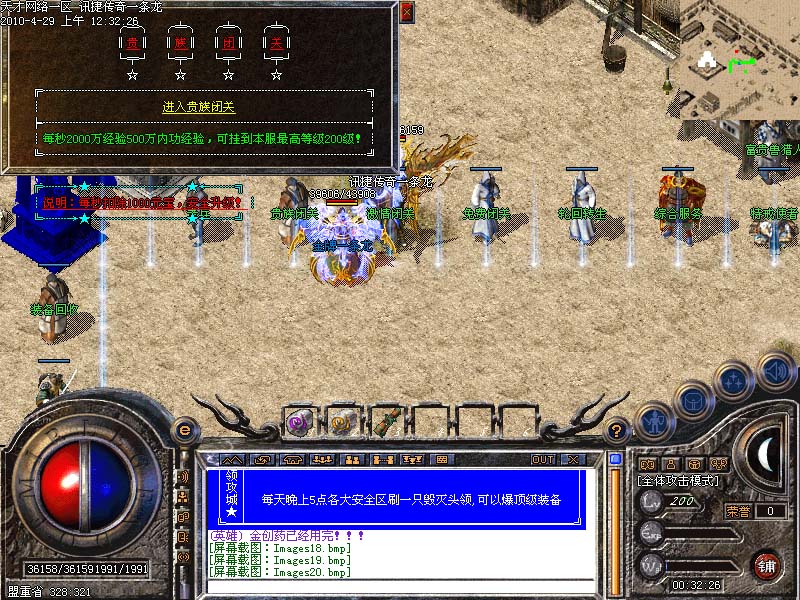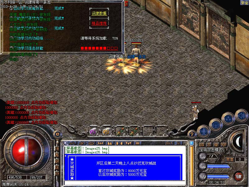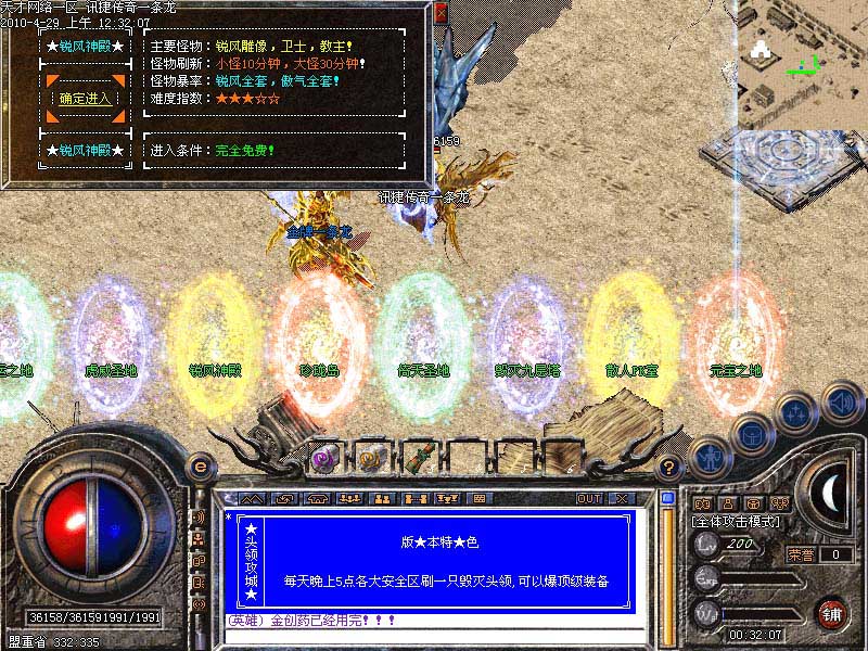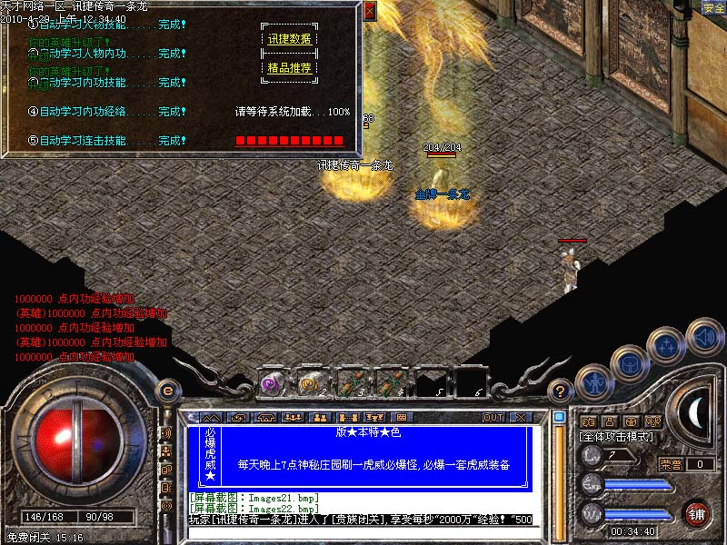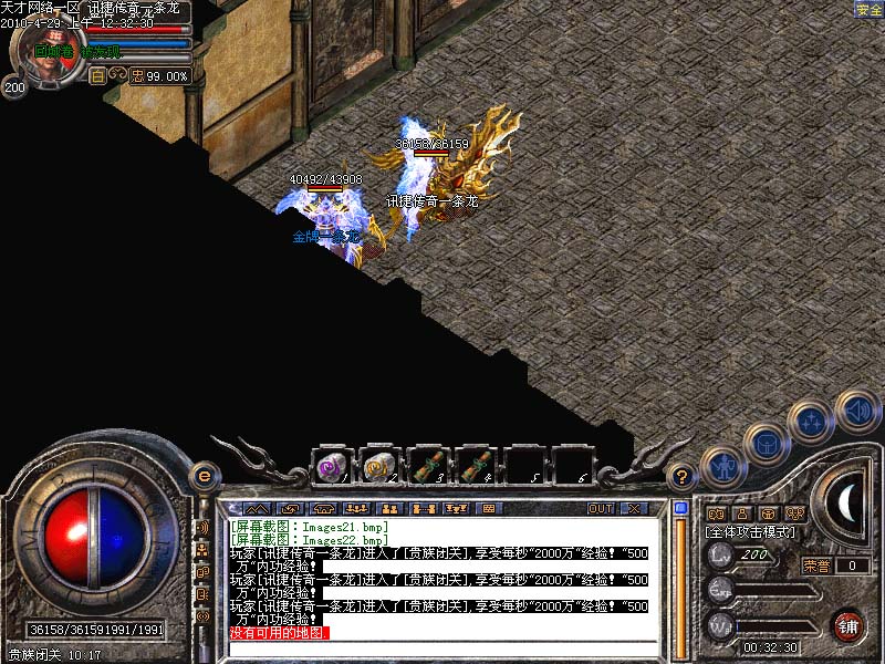 激情殿堂:每秒1200万经验200万内功经验!(可PK区域,可挂到本服顶级200级,内功255级)