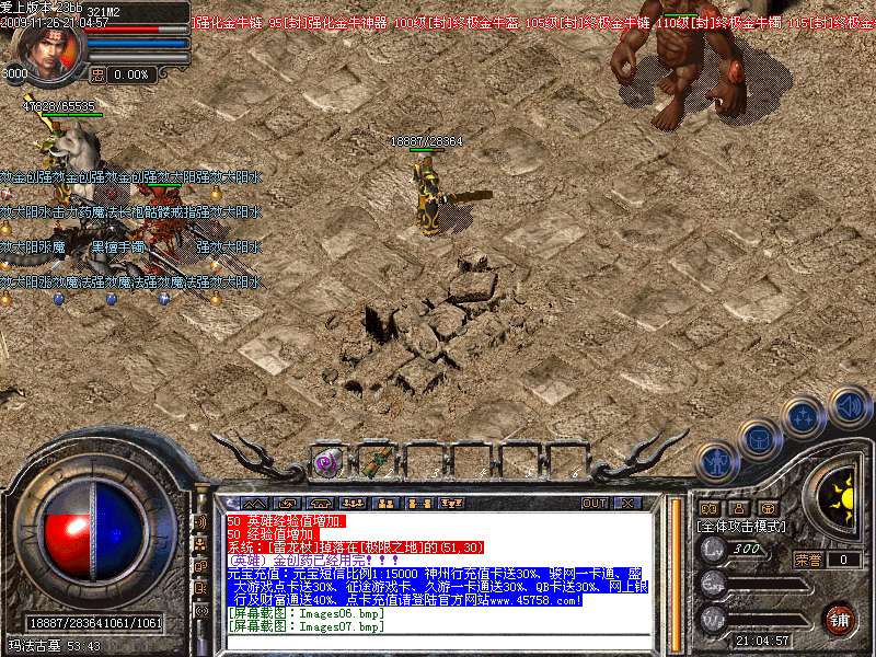 本服元宝比例为1:15000!炎龙,金牛凭证猪洞满地爆。新增加【强化金牛】【终极金牛】装备在【雪域】【终极地图】【极限之地】都有爆!