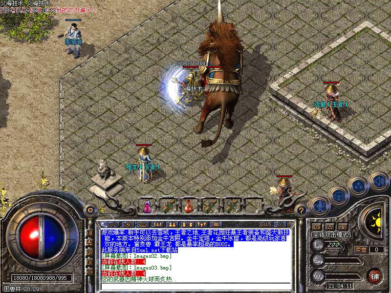 游戏爆率:新手可以去雪域,王者之地,王者花园狂暴王者装备和盛大新技能,本版本特别添加金牛宫殿。金牛宝塔,金牛冰窟,都是高级玩家喜欢的地方。富贵兽 霸王龙 都是暴率超高的BOOS。