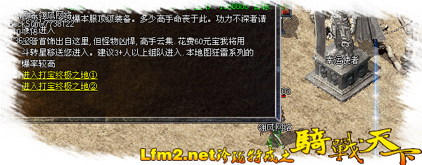 4、新增专爆武器地图:出王者武器!神话一层、石墓七层、沃玛大殿,出基础装备(雷霆、战神)!魔龙玲、恶魔之地、幽冥领地、聚宝盆、死亡峡谷、极限之地、地狱之门、夺命岛出中级装备(狂雷、逆火、通云、王者)!新地图珍珑岛1小时刷、终极神殿2小时刷2只“雪域魔王” 出(王者系列、幻神系列、玲珑系列)!
