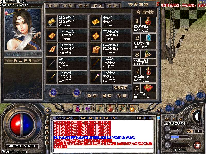 最新加入盛大内功系统,详细信息请到酒馆二楼酒馆弟子和盟重内功宗师了解!