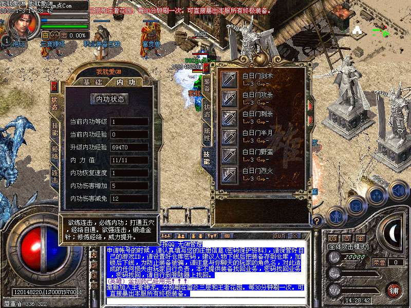 最新加入盛大内功系统,详细信息请到酒馆二楼酒馆弟子和盟重内功宗师了解!