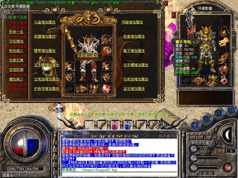4;增加今日的"天下第一剑"系统,此剑属性龙,金质地,性喜怒,不可取下不可保存。系统自动检测,自动赠送到背包。