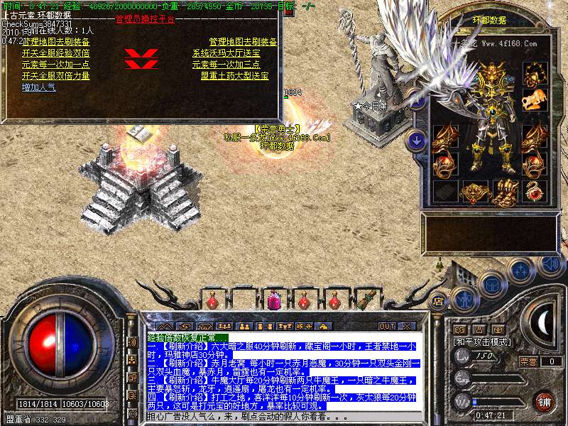 8;增加GM后台命令[@环都管理],后台可给服务器刷会动与不会动的假人。(请看游戏截图有介绍,测试版此功能删减.)