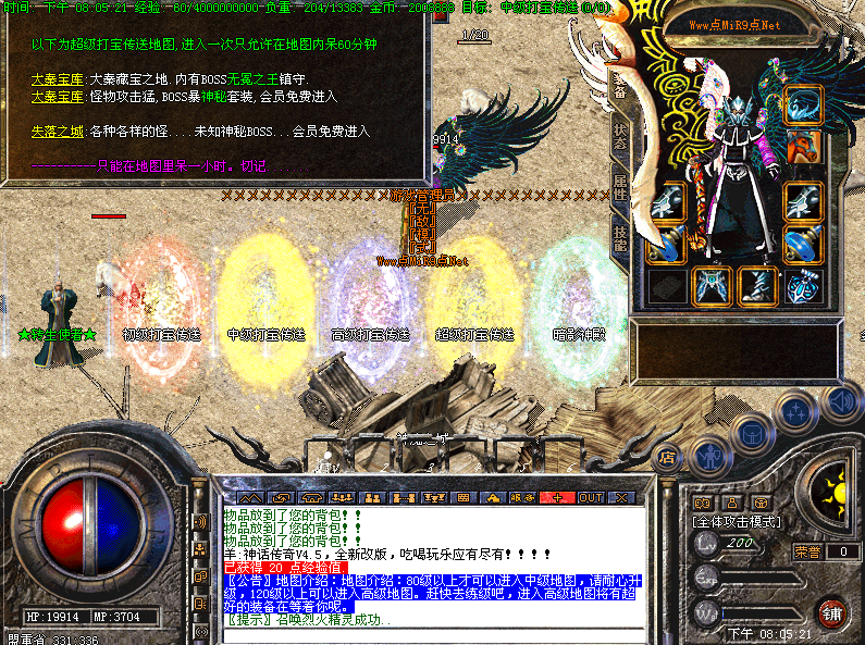 游戏版本:穿越神话V4.5,轻变VS中变.长期玩家的首要选择!