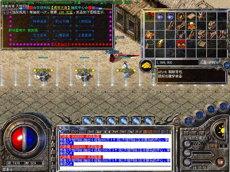 3.【超高爆率】:终极装备都有爆,各图每小时刷1只BOSS,娱乐抽奖抽高级装备几率可观!